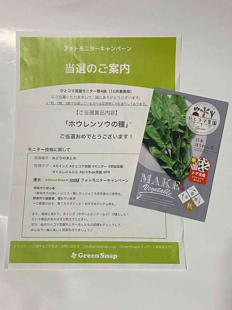 ほうれん草の種 当選致しました😆👍✨