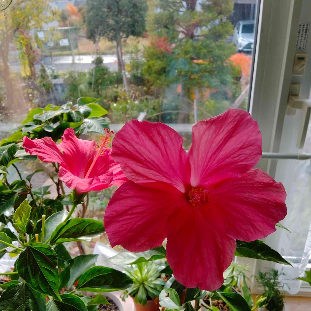 窓辺,ハイビスカス,ピンクの花の投稿画像