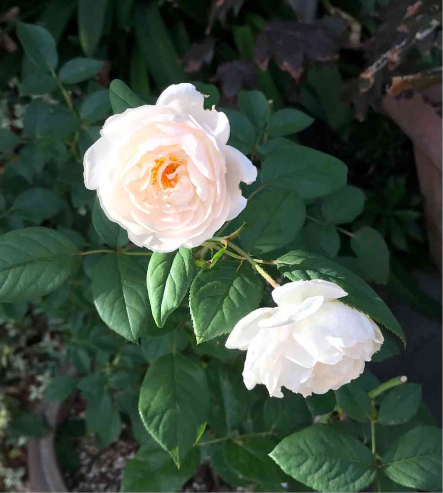デスデモーナ(ER)🌹中心がほんのりピンクで散りにくく素敵なバラです💕DAのサイトによるとオールドローズとアーモンドの花の香りにキュウリとレモンピールの香りが混じると書いてありました😊キュウリの香りっていい香りなのでしょうかねぇ🤣