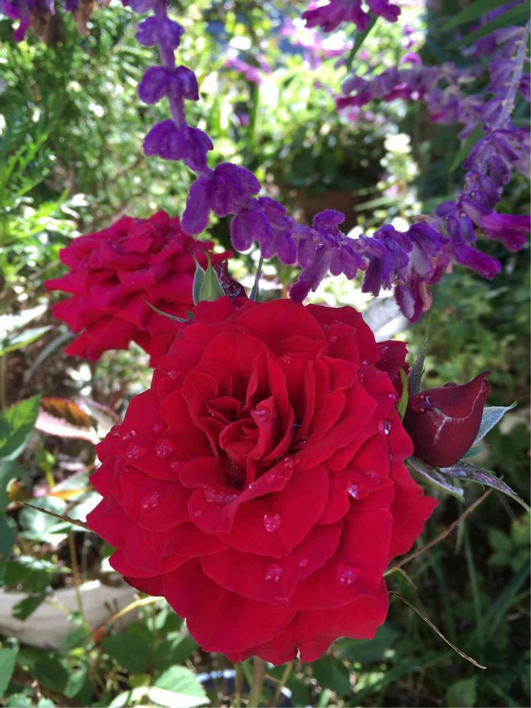 アメジストセージ💜どんどん背丈が伸びて風で曲がって ネックレスのチェーンのようですね😊➰