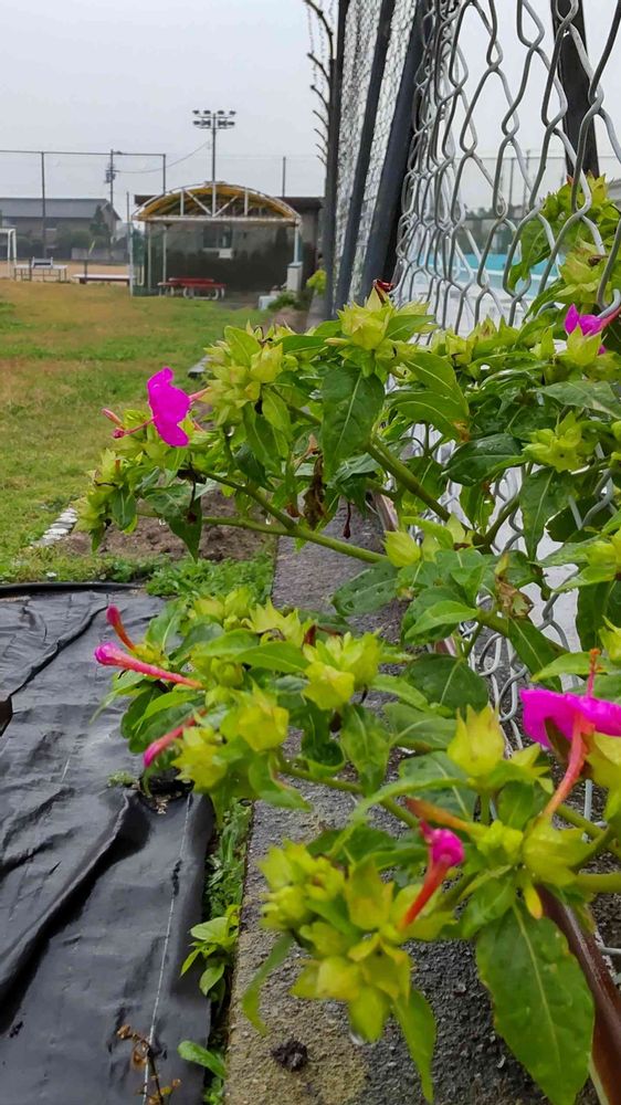 小学校のプール際に冷たい雨☔️に濡れて寒そうです。(投票率は寒くならないで‼️)