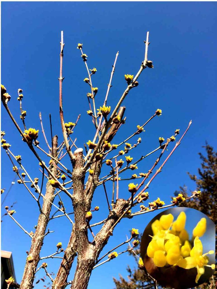サンシュユの花が咲き始めました💕 青空に映えて可愛い😍