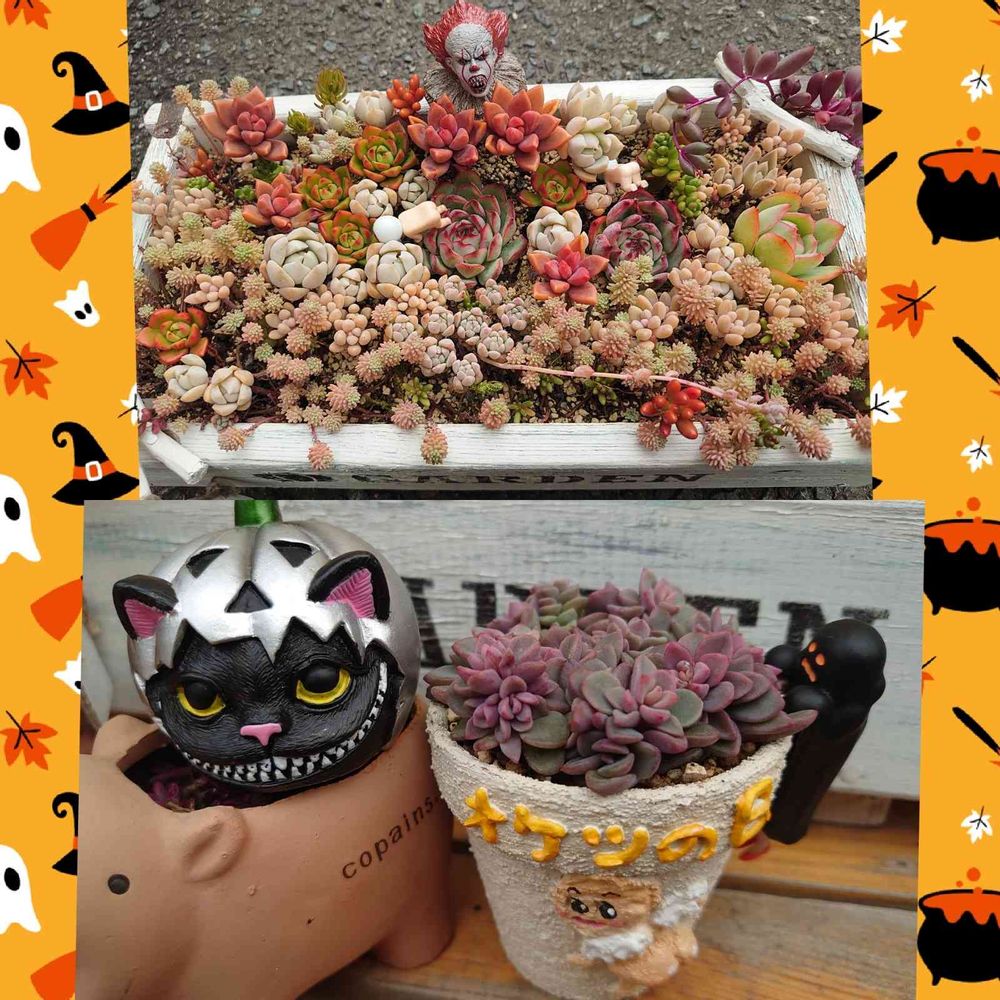 オレンジ系のハロウィンにぴったりの多肉ちゃんたちですね♬😆