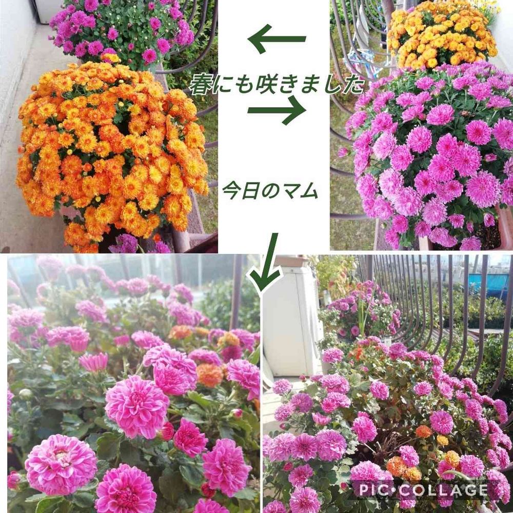 前日のpicのマムの株分けを頂き我が家は全くカット無しで自然に育てています