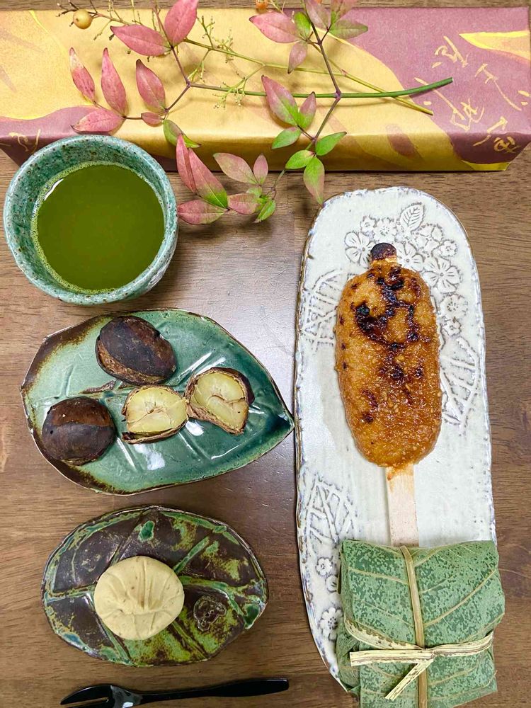焼き栗・五平餅・朴葉栗おこわ🌰
