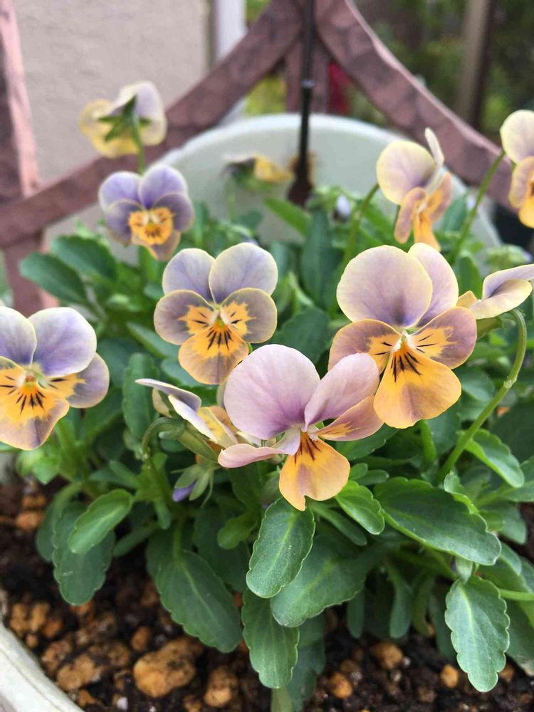 昨日植え付けました。ビオレッタ グレイッシュオレンジモンキーズ、小輪のビオラです。
