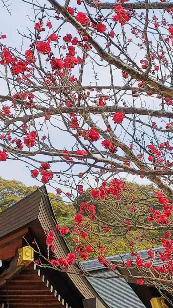 拝殿の横の紅梅がキレイに咲いていました🌼