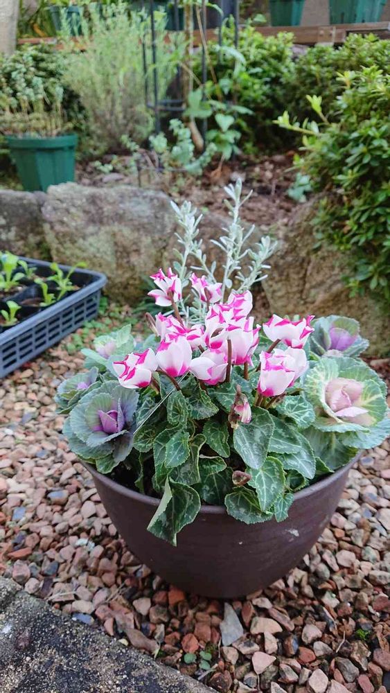takaさんのガーデンシクラメン,スプレー葉ボタン,オレアリア プラチナムの投稿画像