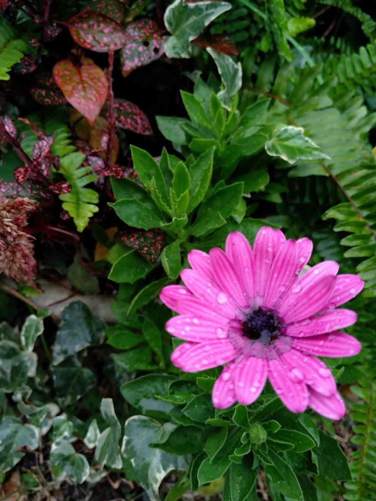 ピンクのオステオスペルマムが咲いててびっくりです。