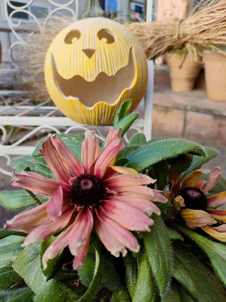 もっとシックなお花なんだろうけど、我が家のは、どう見ても、ハロウィン🎃の悪魔に似合うようなルドべキア…にみえて(笑)