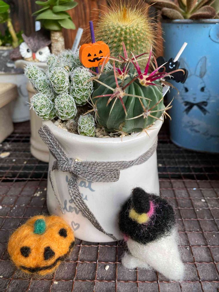 鉢もサボテンも羊毛フェルトもハロウィンピックも100均で買ったわ😆