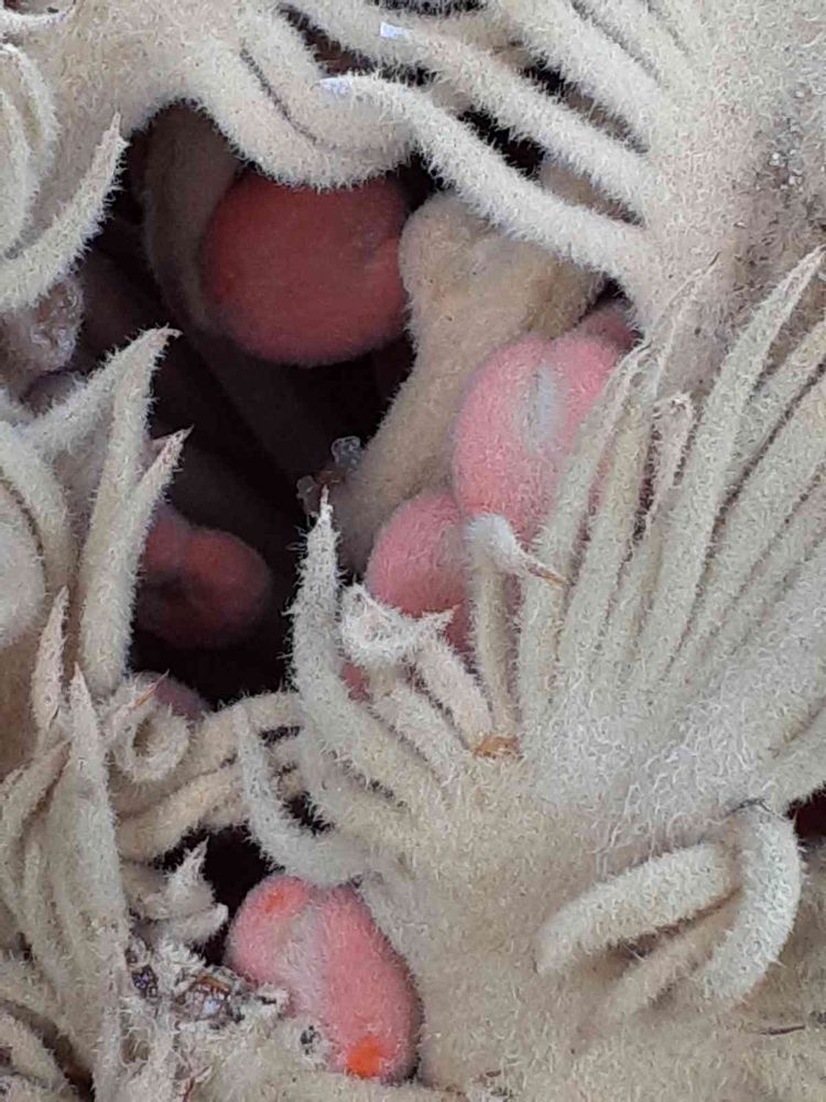 モフモフの毛に覆われたソテツの新芽と中は実です~🧡