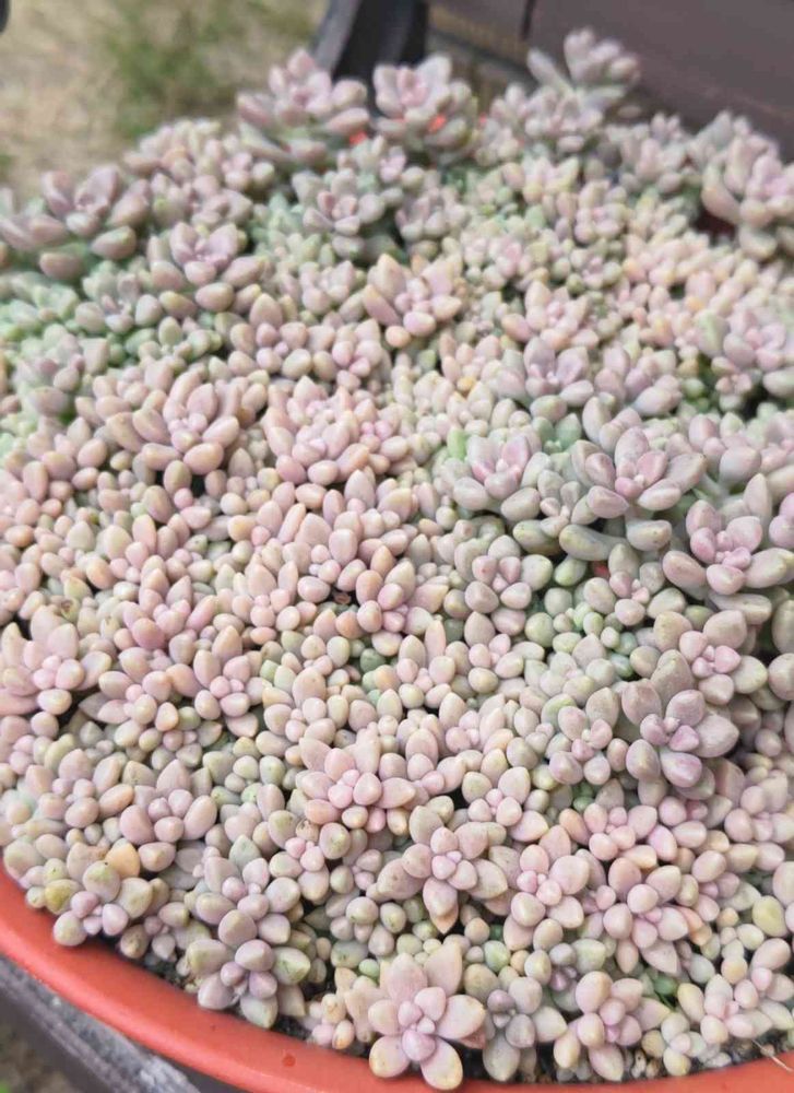 ウチのはこんなにぎゅーぎゅーじゃないですが😅上の方はピンクになってるけど下の小さい子や重なってるところは緑ですね☺️