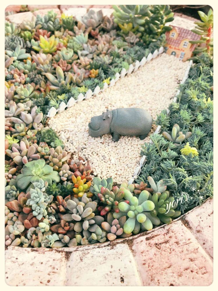 カラフルな多肉の寄植えに可愛いカバさん💕素敵ですよ〜😊🎶
