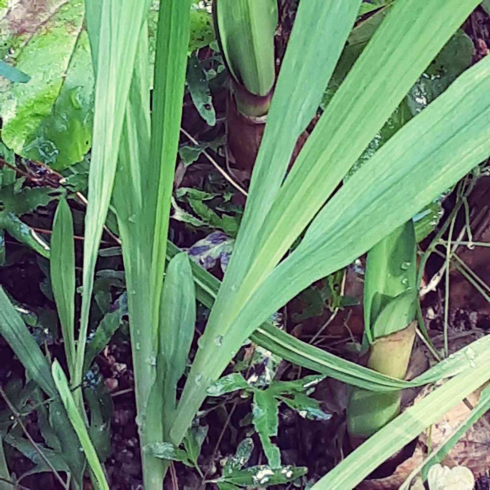 フリージア🌼の🍃もだいぶ成長してきて、その陰にはアマリリス🌸の球根からも🍃がでてきました。