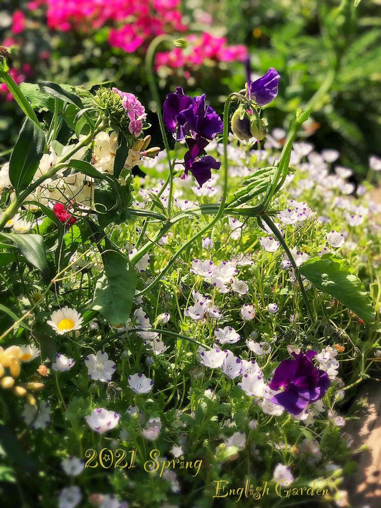イングリッシュガーデンさんの小さな庭,スイートピー,ネモフィラマクラータの投稿画像