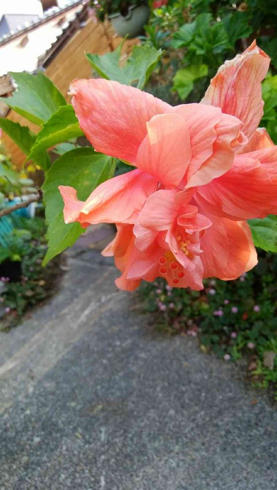 #今朝気がつきました!晩秋の八重咲きハイビスカス😄