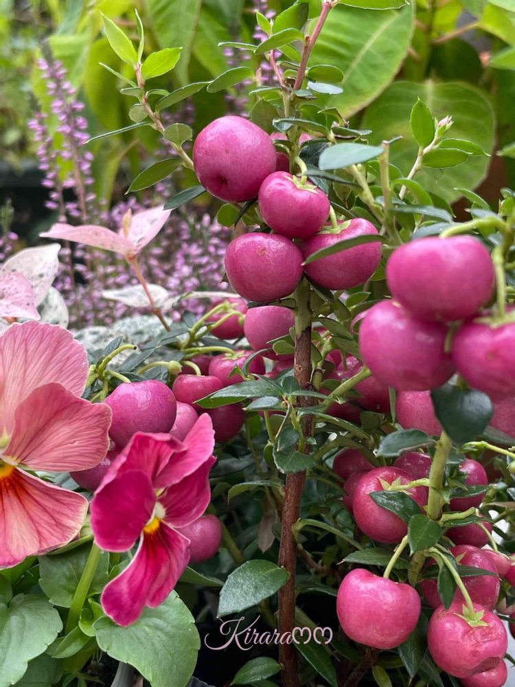 鈴なりのピンクの粒粒 ハッピーベリー❤️を活かした寄せ植えを作ろうと思いお迎えしたアプリコット色のバンジーやカルーナ等をどう合わせようか考えるのが楽しい時間です(*'▽'*)♪