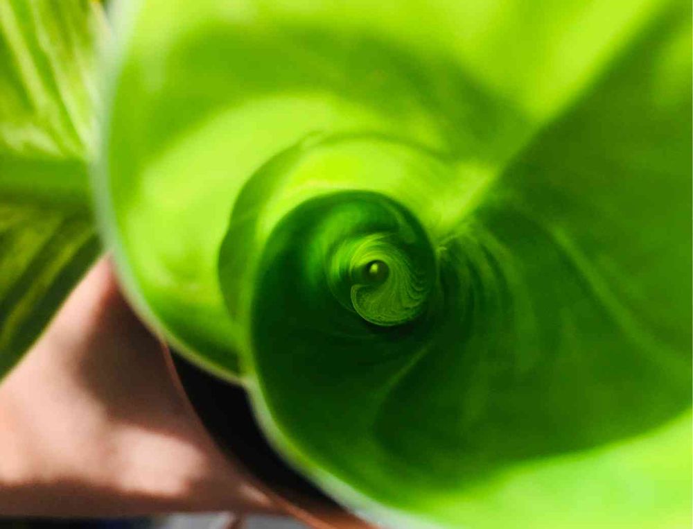 ダイソー産ストレリチアの新芽。こちらにもしっかり斑が入っているようで楽しみ。