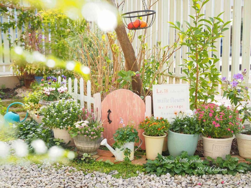 花壇の場所が限られてるのでお気に入りコーナーを作ってここは鉢と雑貨を飾ってます🌼🪑