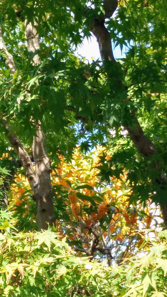 紅葉はまだまだの山モミジと金木犀✨💚💛