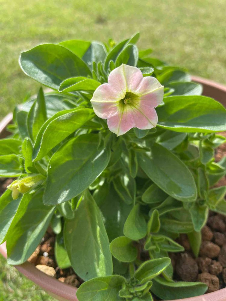 昨年冬越ししたサフィニアももいろハートのももちゃんは夏の長雨で親株も挿し芽も大ダメージを受け、唯一残ったヨレヨレのこの挿し芽株1つのみに。だいぶ涼しくなったこの10日ほどで復活し今日花が咲きました🌸やったー!!!٩(*´∀`*)۶
