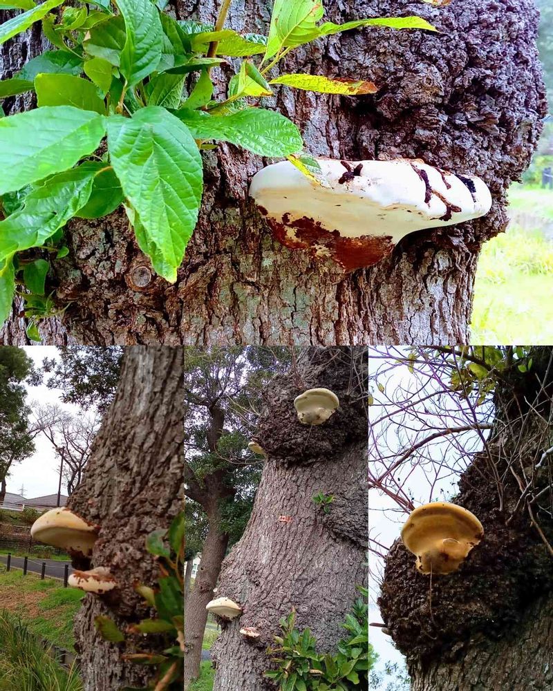 菖蒲畑の側にある1本の🌳に、サルノコシカケがいっぱい出来ていました。