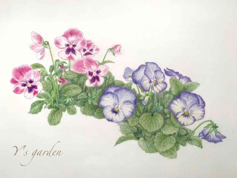 小さな庭,ビオラ・パンジー,色鉛筆画の投稿画像