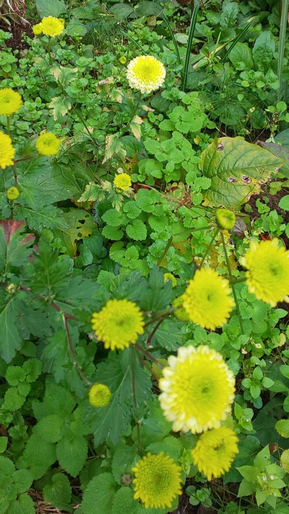 丈が長ーくなった菊(マム?)1株を地植えしてみたら、