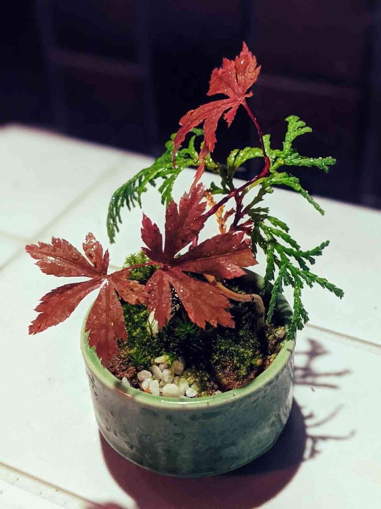 ミニ盆栽、豆盆栽かな?紅葉の紅葉が映えますね。沢山のいいね!ありがとうございました。