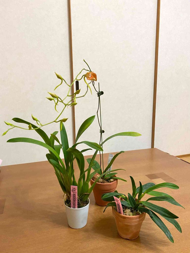 今日の戦利品はオレンジのミニカトレアとオンシジュームみたいなコンパレッティアという蘭と炎みたいな花の咲くブラッシア✨