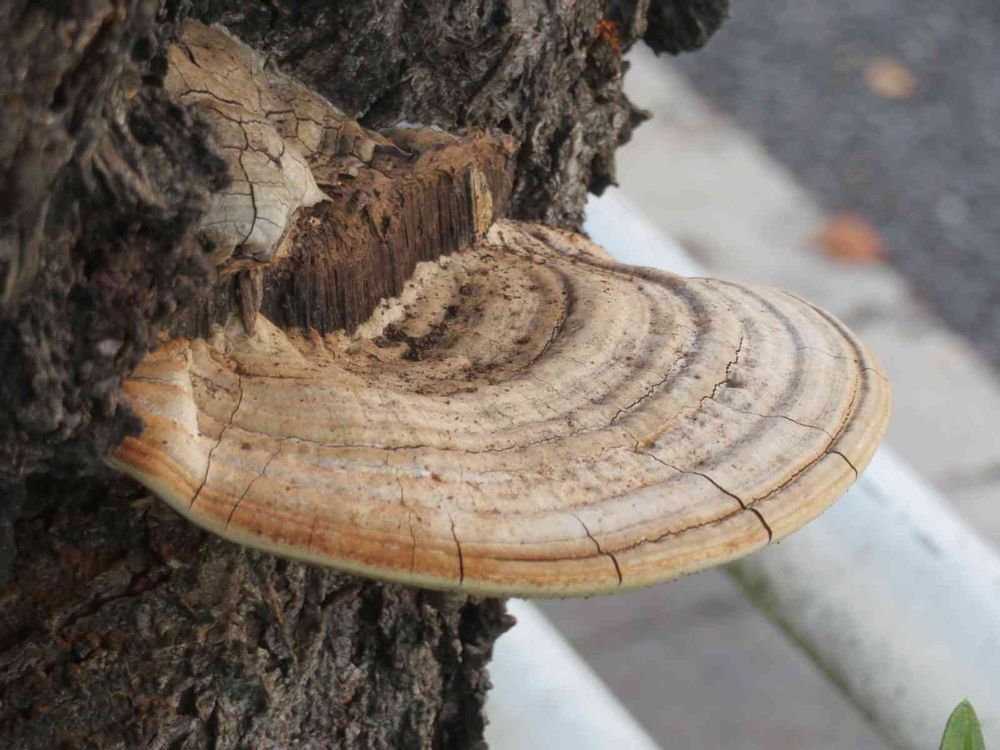 近所のバス停脇に生えている桜の木に立派なサルノコシカケが‼️ちっこいフィギュア一体置けそうですね‼️