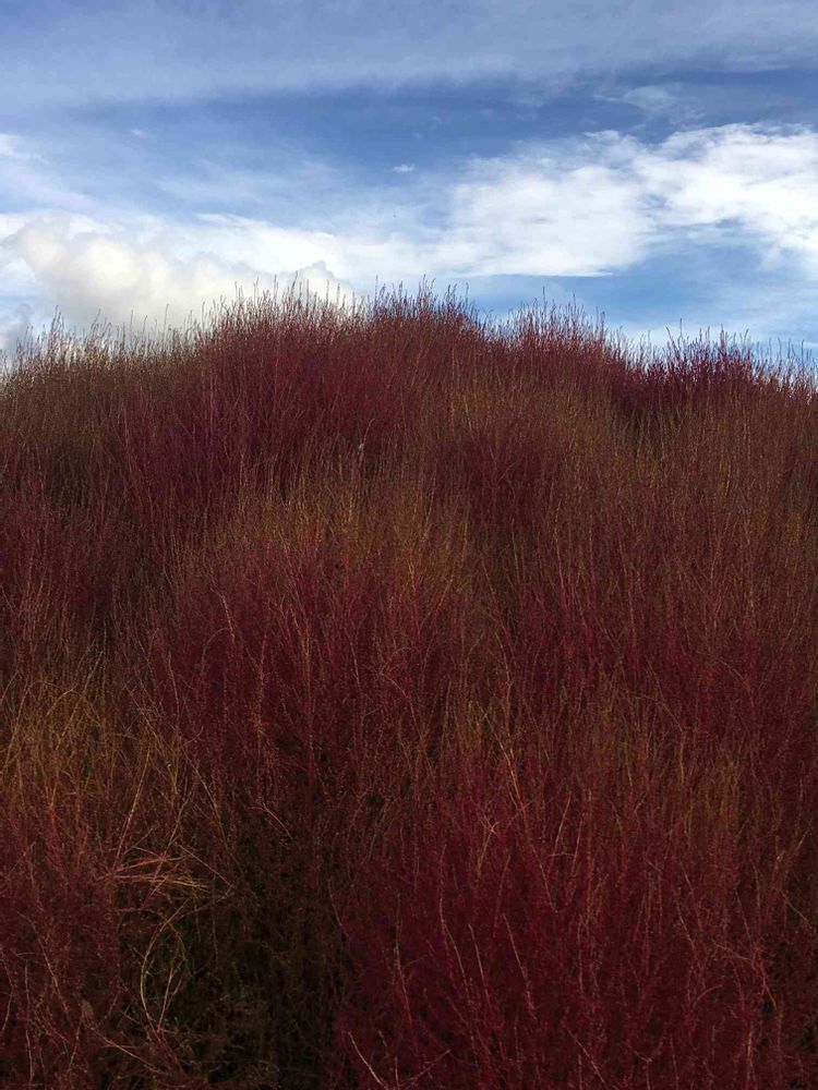 お出かけ先,コキアの紅葉,青空の投稿画像