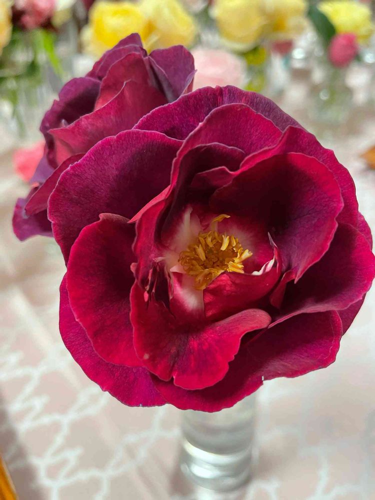 花は咲き進むにつれワインレッドとなり、更に青みを帯び、株全体で、美しいグラデーションが楽しめます。つるバラとしては
