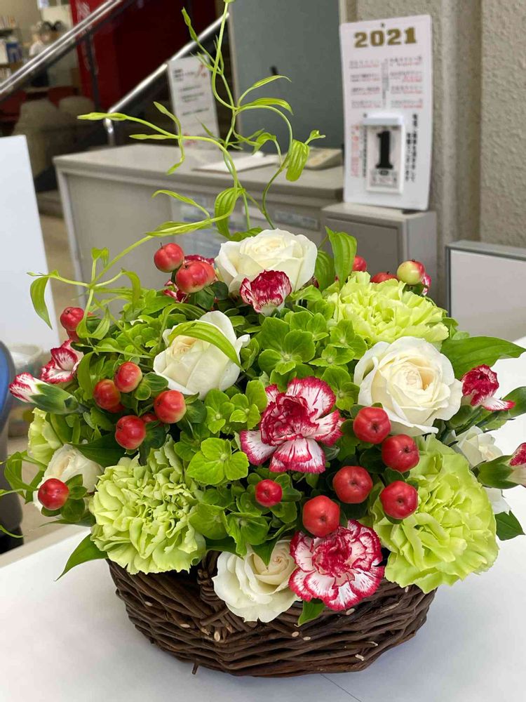 ばあばさんのお出かけ先,フラワーアレンジメント,仕事場にての投稿画像