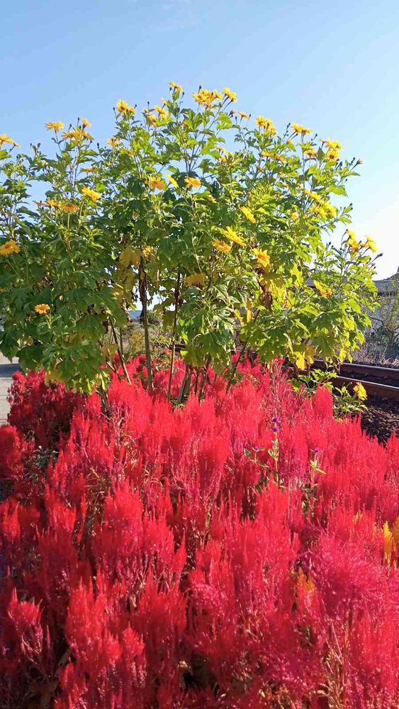 線路沿いに植えられたものですが7m程ある花壇全部がケイトウ迫力満点です。😙
