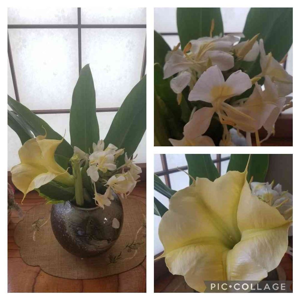 (頂いたエンジェルトランペット・ジンジャーリリー)