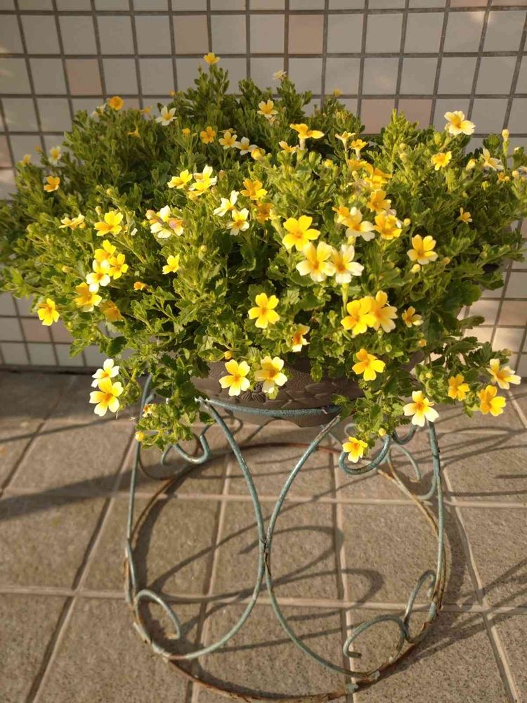 サンブリテニアのイエローです🌼普通のサンブリテニアのように上にフワーっと立ち上がるように咲くのではなく、こんもりと咲く感じです