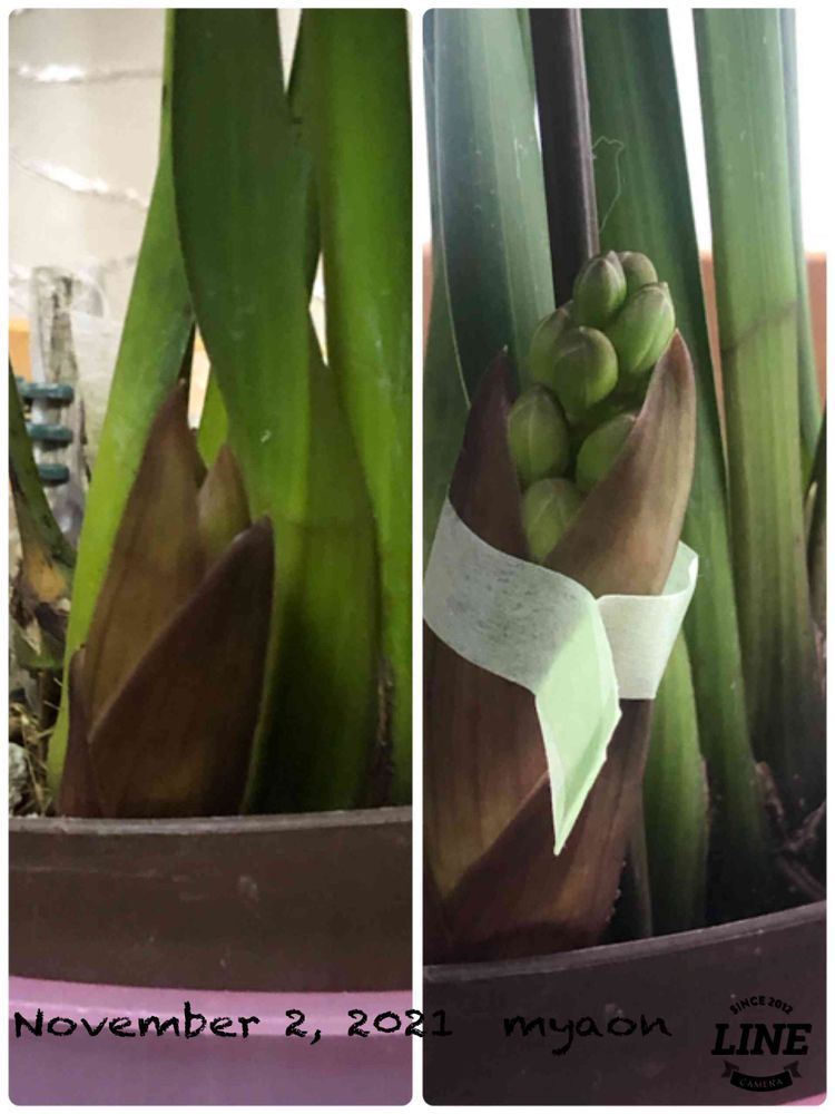 シンビジュームの花芽をどーするのか?myaonさんの見ながら初めて支柱立てながら気になりました!