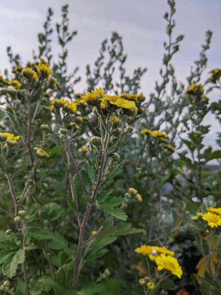 レウコフィルムが、背が高いから、小菊は、お日様にあやかろうと、自ら。背丈を伸ばしています。😱🤣🌼🤔🤗🤣😄