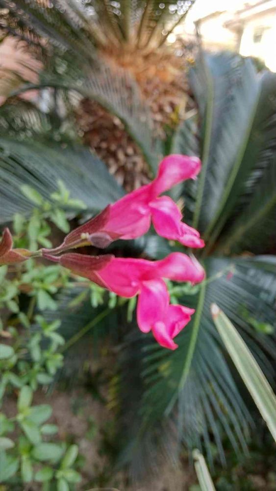 チェリーセージ 素敵な色合いですね~💓お庭で秋風にゆ~らゆら🌿ハーブの中でも好きな香りです😌