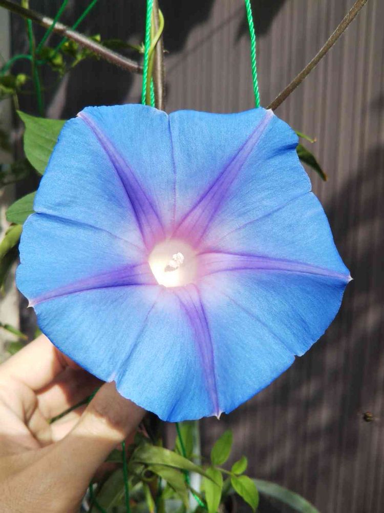 朝の咲き始めは蒼いけど、赤紫に変化して散る