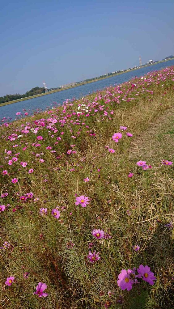 💠遠賀川と、コスモス~✨秋晴れで、のどかで気持ち良いです~💗💞☘️