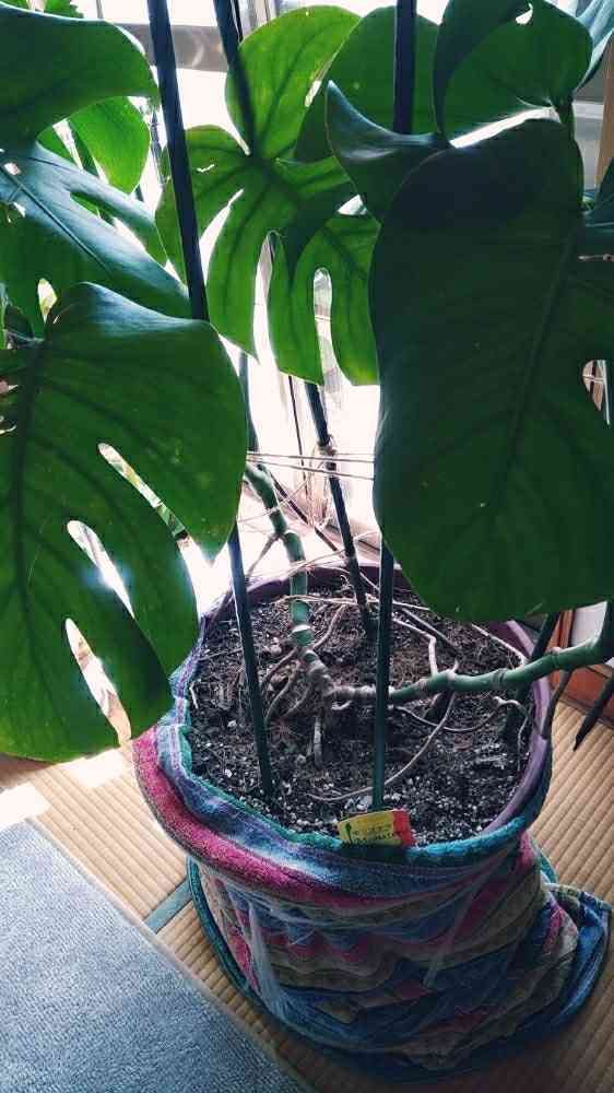 モンステラさん、大きくなりました‼️丈は120㌢葉の長さは25㌢ほどです。