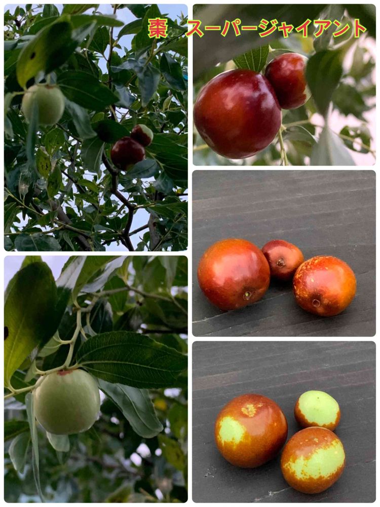 正式名は大雪ナツメで、ナツメ種の中でタマゴよりも大きい一番の巨大果。果重は20~40g、最大で50~100gに達します。リンゴに似た食感で糖度も18度から最高30度と高く、最高レベルの甘さで食べ応えのある品種です。耐寒、耐暑、耐病性が非常に高く、マイナス20度の場所でも栽培可能です。収穫は10月下旬~12月上旬で果実が茶色く変色し始めた時が理想ですが、早取りして追熟させることも可能です。』と書いてありました。