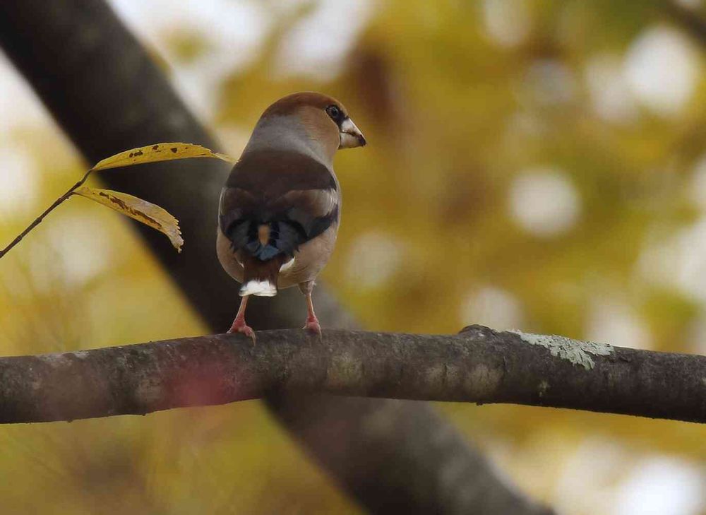 はい、シメ という名前の野鳥です。秋から春までは公園などでも普通に見られる鳥で、種子などを好んで食べます。