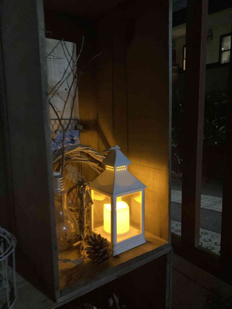 ガーデンライトが500円になってて即ゲット。タイマー付きでゆらゆら揺れる光でいい感じ。