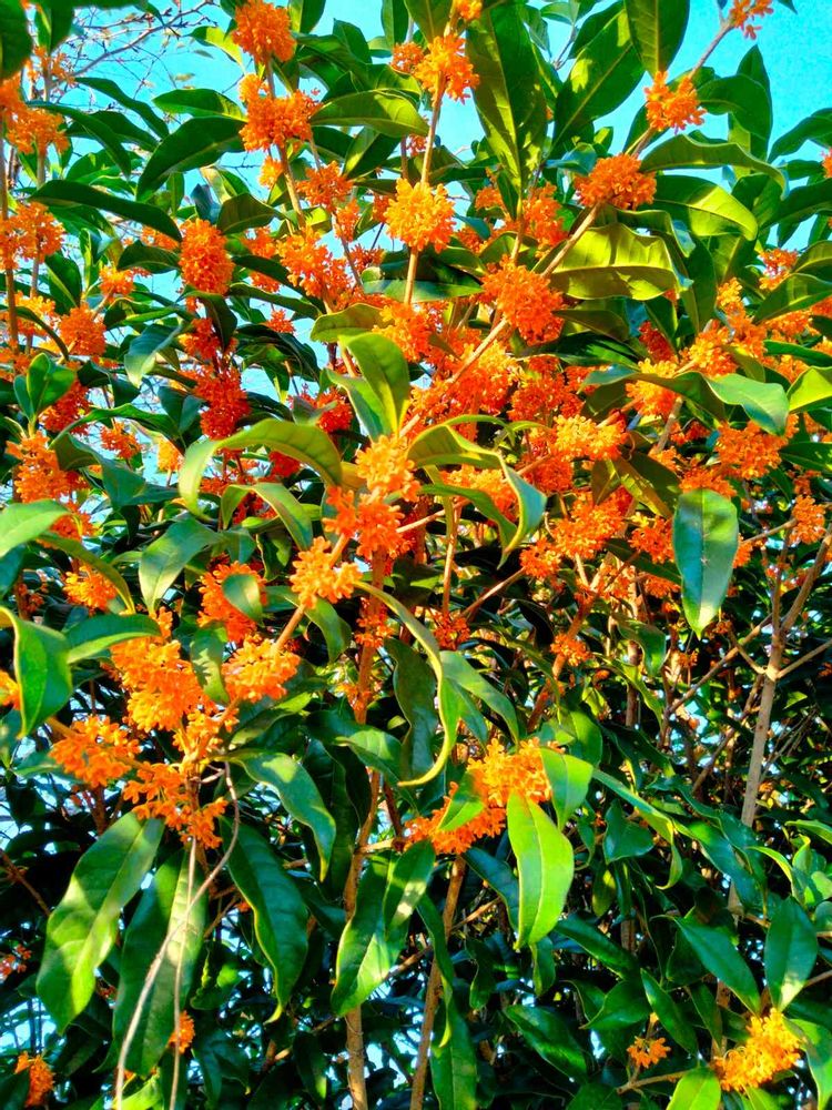 こんなに明るい色の銀木犀🌸🌼初めて見ました。元気いっぱいお花咲かせている感じですね💕