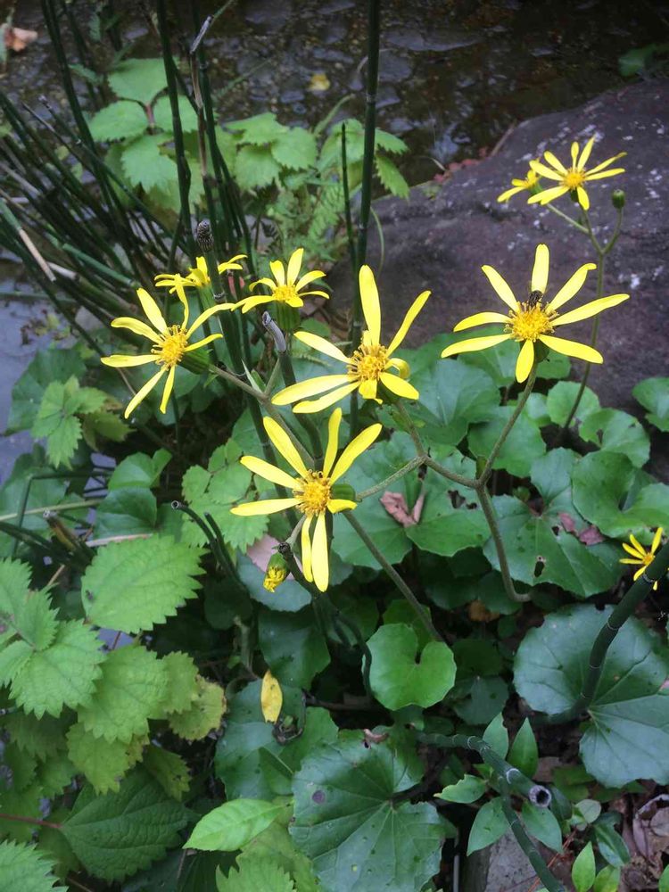 雨だったけど 濡れたツワブキの葉っぱが一層鮮やか見えました😊