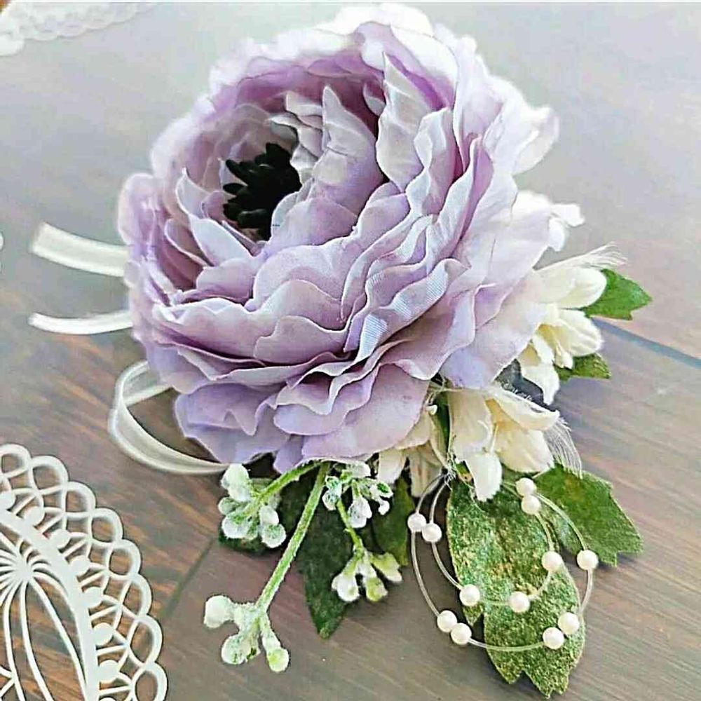 ラベンダーカラーのラナンキュラス(造花)でコサージュを作ってみました(. ❛ ᴗ ❛.)✿